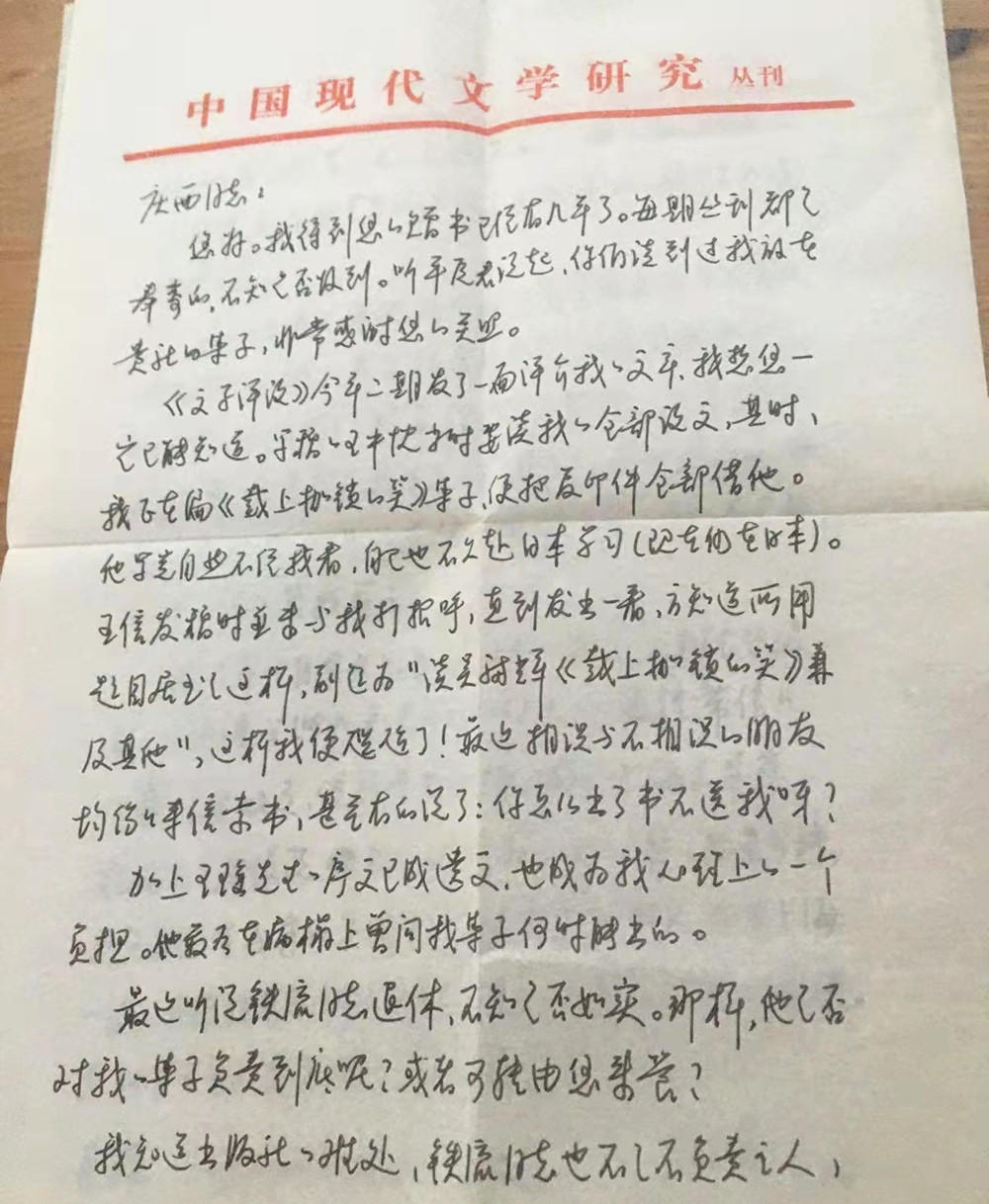 您好。我得到您的赠书已经有几年了。每期丛刊都是奉寄的,不知是否收到。听平原君说起,你们谈到过我放在贵社的集子,非常感谢您的关照。