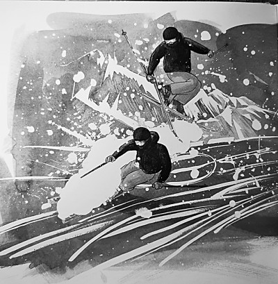 作品对冰雪竞技运动的主题立意表达也具有当代意义。保冬妮并没有把它写成“冠军文学”,而是更多地突出“体育即生活”。四部作品中,孩子们参与冰雪运动的意义,首先在于领略冰雪运动的独特魅力,领略冰雪世界的速度与诗意。绘本中呈现的景观,基本上都是富于动感的动态画面。为了达到这样的艺术效果,作家和画家们多次现场观摩孩子们的练习,通过运动录像、纪录片揣摩运动员的运动轨迹和姿态,寻找绘画的角度和力度。作品最终以流畅的线条勾勒出冰雪少年的飒爽英姿,充分展示了冰雪运动的力与美。