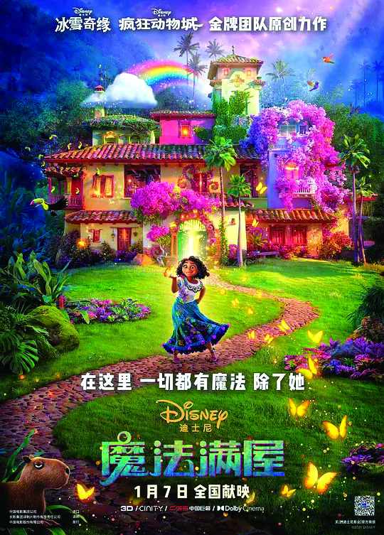 马瑞格家族中都是拥有魔法的天选之人,而只有米拉贝尔是戴着眼镜、平凡无奇的普通人。《魔法满屋》的故事一直围绕着米拉贝尔渴望证明自己的特别之处以及马瑞格家族的魔法即将消失这一危机来展开。虽然能看到影片中对于长幼之间家庭关系的说教,其故事情节也不乏巧合,但这部动画电影还是用童话般的美好结局治愈了人心,同时将针对现代家庭关系的讨论巧妙隐藏在了一个魔法故事当中。