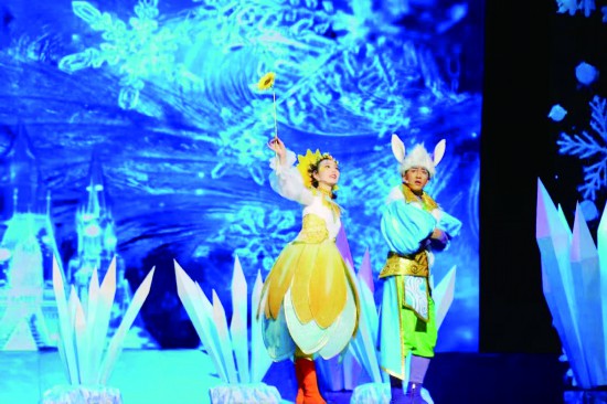 极地王国的太子蓝鲸斑斑即将登基成为国王,在登基大典上,蓄谋已久的乌贼法师施展魔法将蓝鲸斑斑变成了一个长着驴头的怪物,并篡位自己当上了国王,将蓝鲸斑斑和皇后发配到了崇礼。经过重重困难,斑斑在向阳花公主和乐乐、妮妮等好朋友的帮助下,率领崇礼大军杀回城堡,打败了敌人,成为极地国新的国王。为了表现出极地王国的奇幻,舞美团队打破了传统的呈现方式,采用组合舞台、大屏、投影、冰雪元素道具等多种手段,为观众带来了全新的感官体验。多种新技术融合的设计巧妙而新颖,让观众穿越时空壁垒,置身于一座晶莹剔透、秀美壮丽的冰雪王国,收获了一次如梦似幻的艺术之旅。