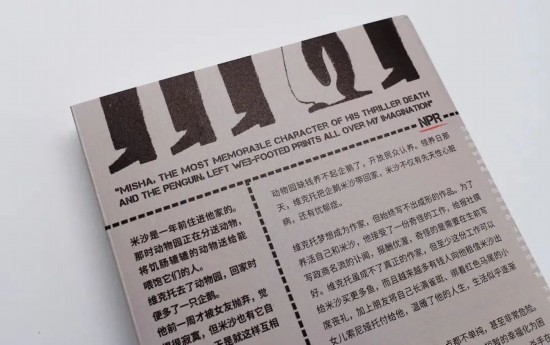 但是,在库尔科夫的故事里,他们——我们——无法改变身边由强大隐形的力量运行的世界,但是他们可以得到奇异的平静,更重要的是,展现些微的仁慈重现人性,比如说,照顾一只想要回家的企鹅。