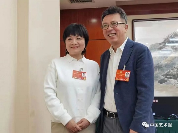 全国政协委员、中国视协副主席王丽萍(左),全国政协委员、中央美院油画系教授刘小东(右)
