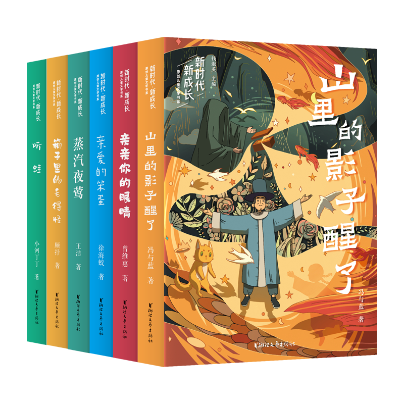 “新时代·新成长”原创儿童文学书系:《山里的影子醒了》《亲亲你的眼睛》《亲爱的笨蛋》《蒸汽夜莺》《箱子里的毛得怪》《听蛙》