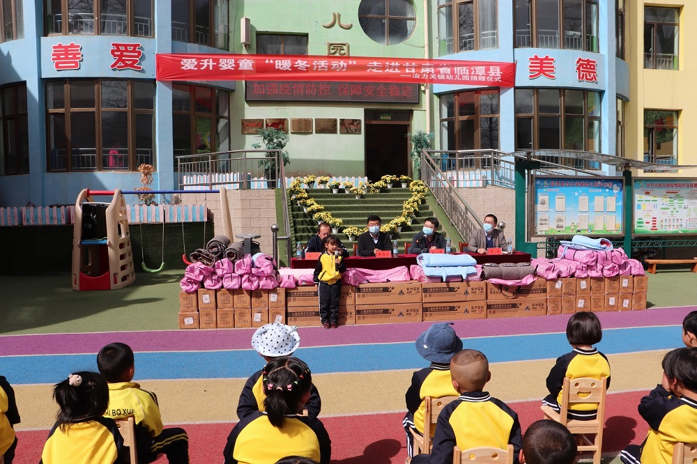 3月14日,中国作协派驻甘肃省临潭县的帮扶干部、县委常委、副县长崔沁峰和冶力关镇池沟村“第一书记”、驻村帮扶工作队队长王栋在冶力关镇幼儿园开展爱升童婴“暖冬活动”走进临潭爱心捐赠活动。此次捐赠通过积极争取新浪育儿、微博母婴、浙江爱升婴童等社会力量参与帮扶工作,为临潭县日托幼儿捐赠价值6万元的卡通睡袋200套,其中,为冶力关镇幼儿园捐赠睡袋70套。