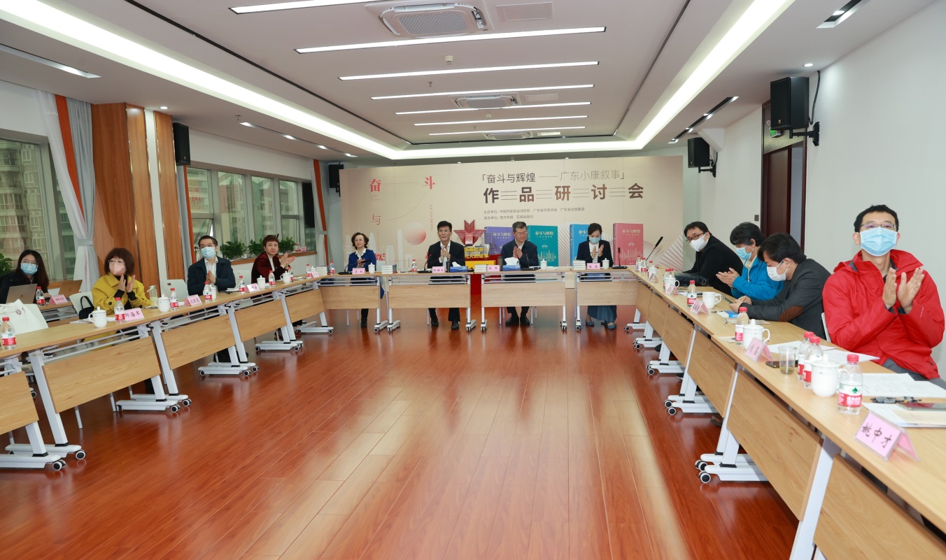 3月24日,由中国作协创研部、广东省作协、广东省出版集团联合主办的长篇报告文学《奋斗与辉煌——广东小康叙事》研讨会在广东文学艺术中心举行,来自广州、北京的专家通过线上线下相结合的方式参会。