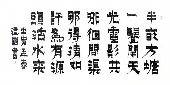 应该是十年前,我在网上欣赏书法作品时,发现了金农的漆书作品,被笔画方正,棱角分明,橫画粗重而竖画纤细、墨色乌黑光亮,犹如漆成的书写特点深深震撼并吸引了,当时我就迫不及待地进行了一段时间的临摹,虽然略有形似,但由于我的书法功力尚浅,难得神韵,练习了一段时间后就放弃了,继续临习楷书和行草,后来又临习隶书。