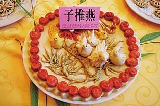 其一,禁火原本是寒食的习俗,而随着寒食节的融入,清明节便多了一个不许动烟火、只能吃凉食的习俗。另外,纪念介子推的子推燕,也出现在了清明习俗中。