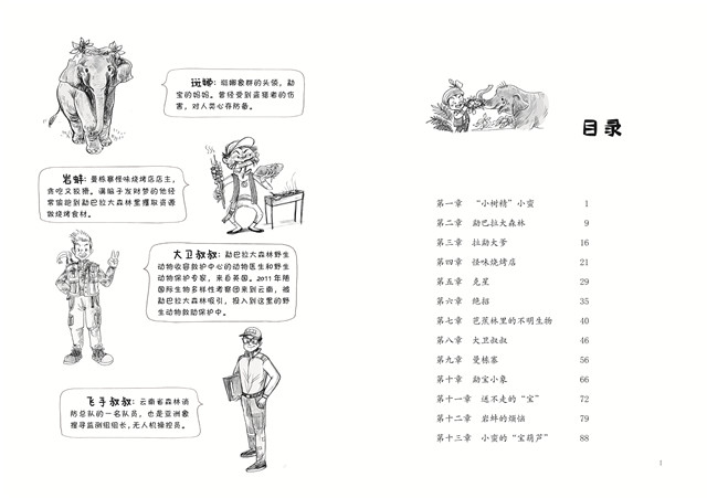 在整本书的各种形象中,最让大家印象深刻的大概要数那位“眼里一绿就是菜,一动就是肉”的怪味烧烤店老板岩蚌了。“这个人物是一个很有喜感的角色,自带漫画感,作者并没有刻意丑化这个角色,只是突出了他的贪婪。”徐德霞认为这种漫画的夸张感正是孩子们所喜爱的。崔昕平也注意到了湘女在处理这个人物时所采取的一种欢快的喜剧感——故事的最后,岩蚌逐渐认识到雨林万物也许真的富有灵性,在他即将跌落下瀑布时,小象勐宝救下了他,可是聪明狡黠的小象同时又把他的衣服卷走了,最后被救出时,岩蚌不得不把自己卷在芭蕉叶里。“这个‘洗心革面’的过程写得很欢乐,非常具有儿童文学的特点。”崔昕平说。