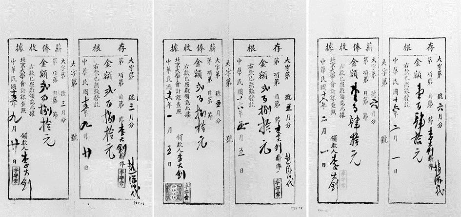 李大钊的三张薪俸收据
