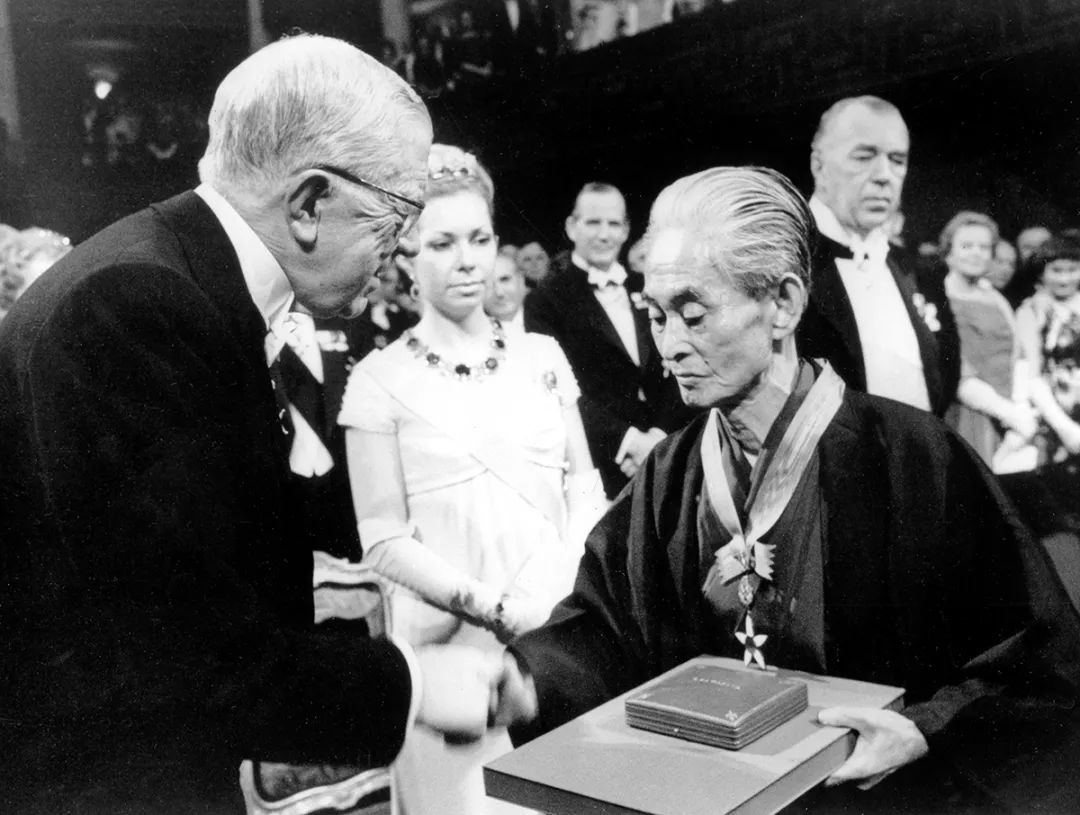 川端康成领取1968年诺贝尔文学奖,并发表著名演说《美丽的日本与我》
