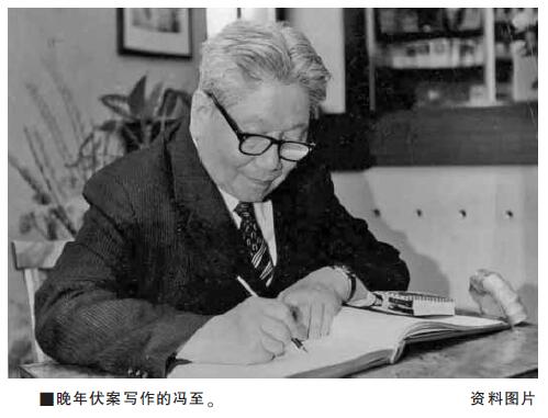 从20世纪50年代到90年代,无论面对怎样的现实境遇,冯至始终竭尽所能,为新中国文化事业添砖加瓦。一方面,他以杜甫研究为切入点,积极推进古代文学遗产的创造性转化,编选了《杜甫诗选》,出版了文艺论文集《诗与遗产》。另一方面,他持续推进德国文学译介与研究,主持翻译《布莱希特选集》,编写、翻译、出版了《德国文学简史》《海涅诗选》《德国,一个冬天的童话》以及专著《论歌德》。由于冯至对中德文化交流的杰出贡献,他先后于1985年、1987年被授予“格林兄弟文学奖”和“大十字勋章”。1993年2月22日,冯至在北京逝世,享年89岁。在遗嘱中,他这样表达了对国家与民族最后的、诚朴的热爱——“希望与我有关系的后代,老实做人,认真工作,不欺世盗名,不伤天害理,努力做中华民族的好儿女。”