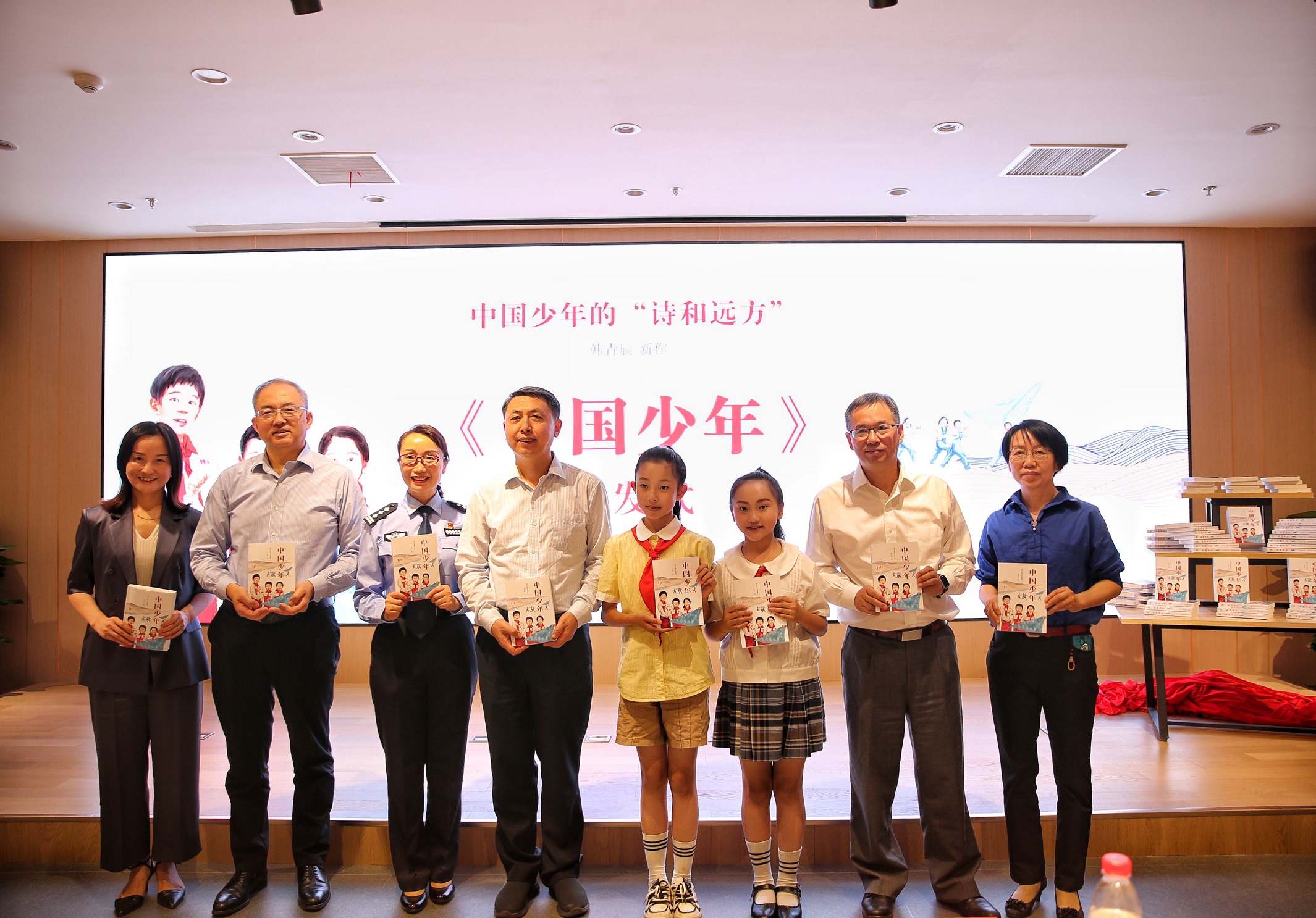 5月18日,江苏凤凰少年儿童出版社携手南京凤凰国际书城、凤凰云书坊举办“中国少年的‘诗和远方’——《中国少年》首发式”活动,江苏省作协党组书记汪兴国、江苏凤凰出版传媒集团总编辑徐海、江苏凤凰出版传媒集团出版部主任樊明、南京市北京东路小学特级教师朱萍、《中国少年》作者韩青辰、苏少社社长王泳波和副总编辑陈文瑛等出席活动。