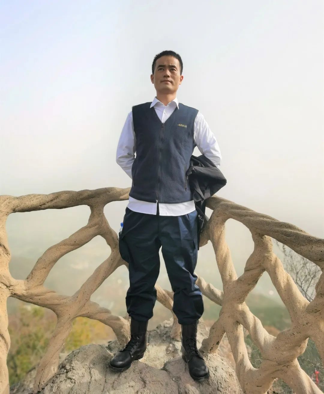去吃饭的路上,是白天难得的不需要瞪大眼睛的时刻,林明钦他们都是眯着或闭着眼走路的。后来,配发了墨镜,自建了简易岗亭,开起了透风的巡逻车,他仍把自己比作“挂炉烤鸭”。