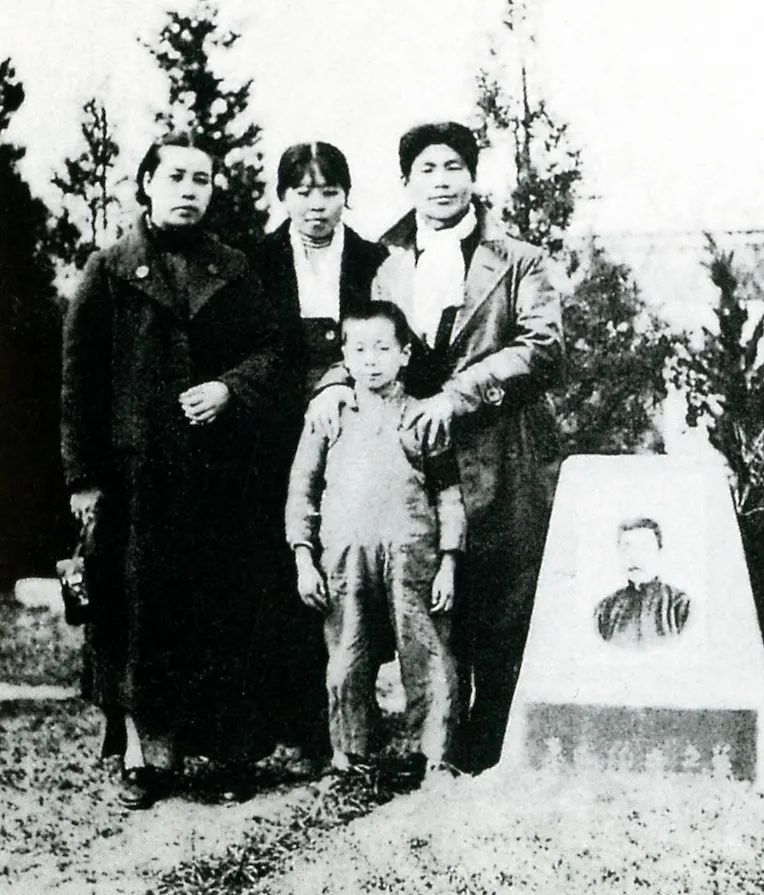许广平、萧红、萧军(后排左起)和海婴1937年年初摄于鲁迅墓旁