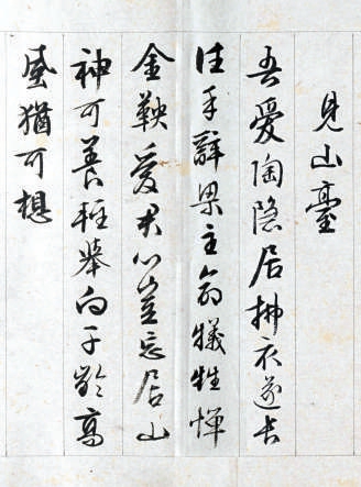 特别值得一说的是园中一座名为“见山台”的高台,高台上凉风习习,是夏日读书、睡午觉的好地方。登台后视野开阔,可远眺城外群山。目前可见的多数古籍所记司马光的《见山台》均为:“吾爱陶渊明,拂衣遂长往。手辞梁主命,牺牛惮金鞅。爱君心岂忘,居山神可养。轻举向千龄,高风犹尚想。”唯有美国克利夫兰艺术博物馆和台北故宫博物院所藏明代文徵明的行书《独乐园七咏》中写作“吾爱陶隐居”,差别似乎不大。所有研究者都认为此景借用了东晋诗人陶渊明“悠然见南山”的典故,但其中的内容似乎又与陶渊明的事迹不太相干。