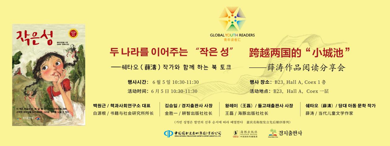 首尔当地时间6月5日上午,青年读者汇·韩国站在首尔国际书展上启动。10年前的2012年,为纪念中韩建交20周年,韩国作为主宾国参与了北京国际图书博览会。适逢中韩建交30周年,中国图书进出口(集团)有限公司联合海豚出版社和韩国耕智出版社合作举办青年读者汇·韩国站活动。韩国青年读者围绕中国儿童文学作家薛涛的《小城池》,分享了对中国文化的看法和认识,与会嘉宾也充分肯定了中韩两国出版业为推动两国文化交流做出的贡献。
