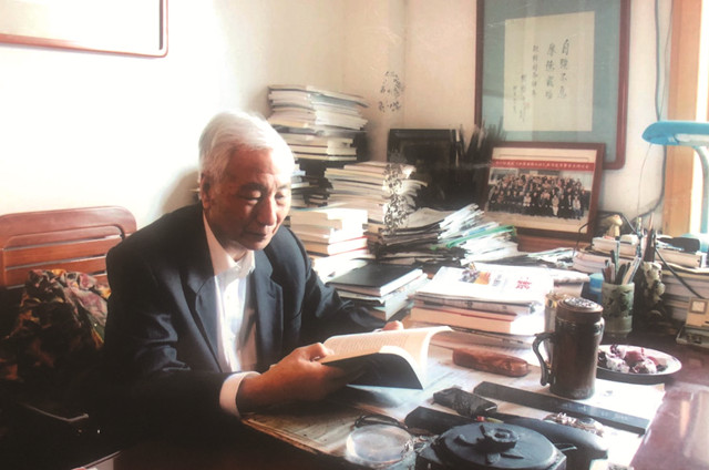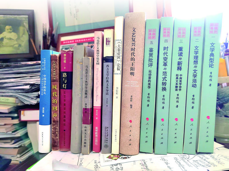 走进李衍柱先生的书房,狭小的空间被书香和墨香环绕:一张暗红色的木质书桌、一把工作椅,一排书柜贴墙而立,与书桌对望。打开书柜,各式各样具有年代感的文艺学研究领域的书籍应有尽有。这些书籍或旧或新,有些是“惊鸿一瞥”的偶然购得,有些是百般探寻后的“珍藏”,却如一串串珍珠,串联起理想与现实,记录着他走过的人生岁月。