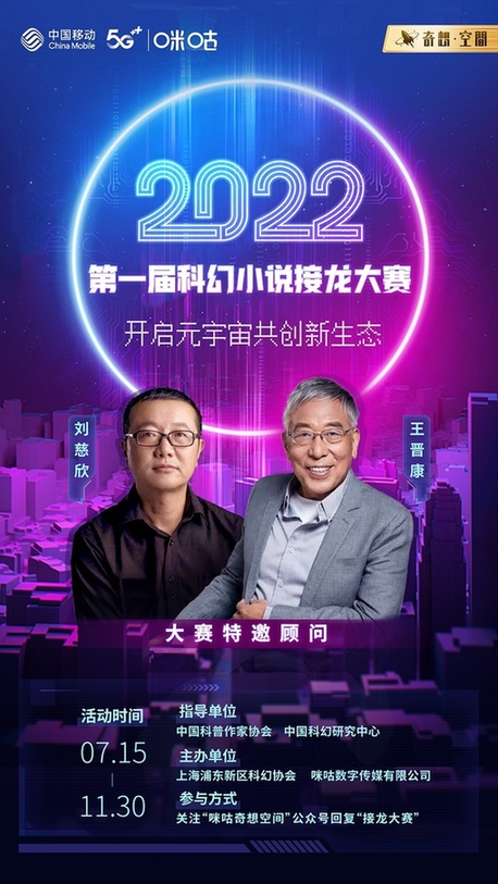 由中国科普作家协会、中国科幻研究中心指导,上海浦东新区科幻协会和咪咕数字传媒有限公司联合主办的首届“科幻小说接龙大赛”近日重磅开启。刘慈欣等众多科幻名家汇聚,助力探索元宇宙科幻创作新业态。