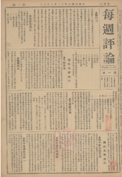 《每周评论》创刊号首页