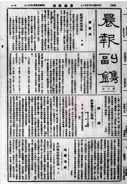[64] 《民国日报·觉悟》1919年创刊于上海,1931年停刊。在如此长的出版时期内,形制有多次变更,此处仅言1924年底时的情况。