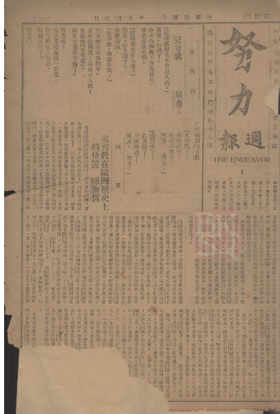 《努力周报》创刊号首页