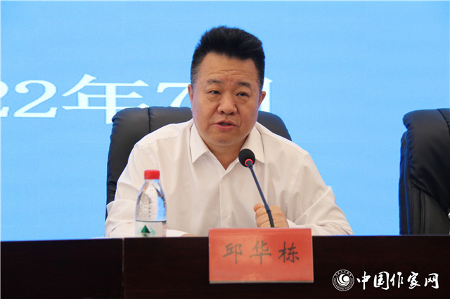 邱华栋在讲话中表示,举办此次培训班,是中国作协进一步贯彻落实习近平总书记在中央民族工作会议和在中国文联十一大、中国作协十大开幕式上的重要讲话精神,在文学界实施“文化润疆”工程的一次重要举措,也是落实中央宣传部全国文艺业务骨干培训工作计划的重要内容。举办培训班的初衷,就是要站在我们党跨过百年历史的重要时间节点上,进一步团结和引导全国多民族作家“像石榴籽一样”,紧密团结在以习近平同志为核心的党中央周围,深入学习贯彻习近平新时代中国特色社会主义思想,特别是总书记关于民族工作和文艺工作的重要论述,把握好铸牢中华民族共同体意识的主线,以奋进新时代、阔步新征程的昂扬姿态,倾情投入到文学工作举旗帜、聚民心、育新人、兴文化、展形象的使命任务中,使我国文学的百花园不断呈现出绚彩夺目的洋洋大观。