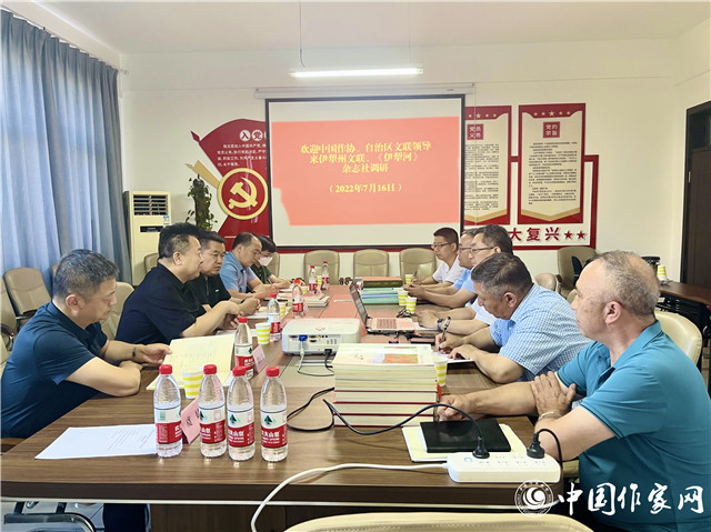 开班式结束后, 邱华栋一行来到伊犁州文联、《伊犁河》杂志调研。伊犁州文联党组书记甄敬庭介绍了文联和作协的主要工作,《伊犁河》杂志社汉语、哈萨克语、维吾尔语编辑部的三位负责人依次就近年的期刊工作做了介绍。邱华栋表示,伊犁州文联、作协长期立足边疆,为推动伊犁州文学的发展繁荣做了很多卓有成效的工作。《伊犁河》长期以来为培养多民族作家、推出优秀文学作品提供了重要平台,发挥了重要作用。在党中央“文化润疆”工程的推动下,希望伊犁州文联、作协能紧密联系自身实际,《伊犁河》也能进一步拓展编刊视野,勇于想办法、开新局,做出更多富有开创性的工作。他表示,中国作协历来高度重视新疆的文学事业发展,也会为新疆文学的发展提供力所能及的帮助与支持。