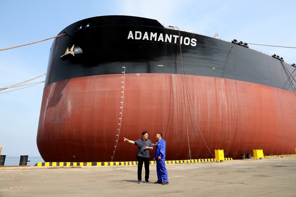 2022年7月25日下午,作家于永铎采访了大连船舶工业集团船坞二部,这个部门拥有“神州第一坞”,是大连船舶重工集团建造30万吨油轮的主力部门。副首席技师宋忠伟同志详细介绍了我国自主设计的100艘30万吨油轮的建造全过程。图中就是刚刚建造完成的第100艘30万吨油轮,这艘油轮下水试航归来,各项指标正常。