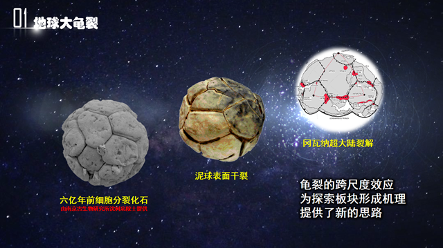 唐春安通过图示讲解“地球大龟裂”科学假说形成的思路