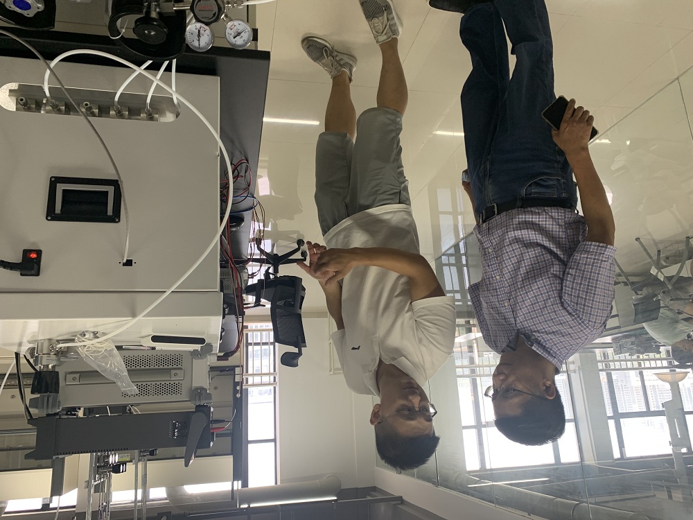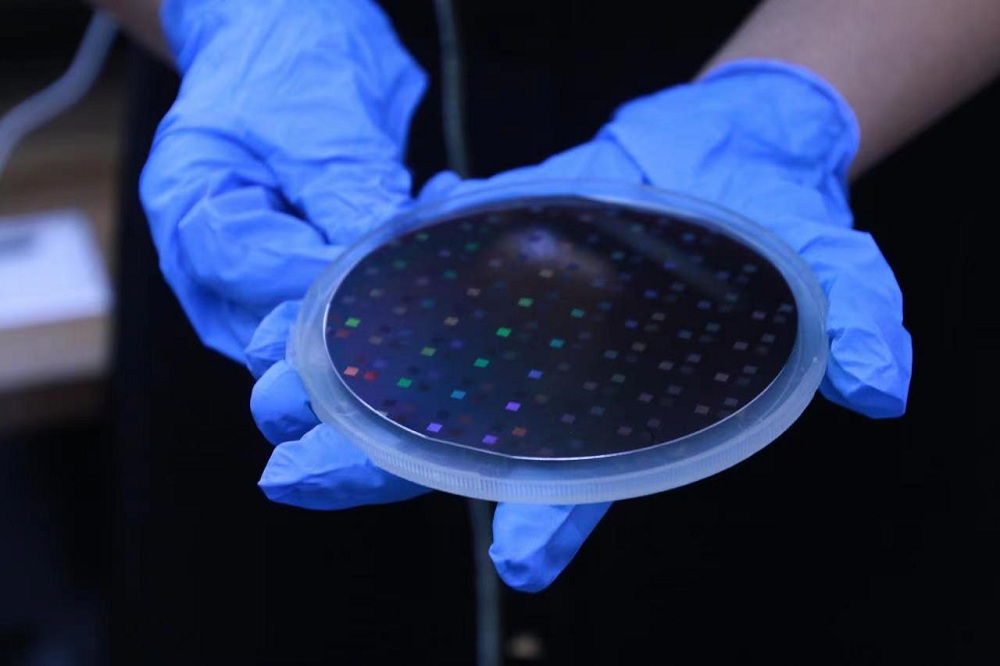 2022年7月25日,曹凌云(左)在中电海康•温州光电产业创新联合体光电材料与器件应用实验室了解情况。