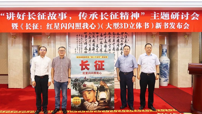8月1日,由人民邮电出版社和中共党史出版社主办,童趣出版有限公司承办的“讲好长征故事,传承长征精神”主题研讨会暨《长征:红星闪闪照我心》(大型3D立体书)新书发布会在北京举办。中国出版协会理事长邬书林,中国战略与管理研究会志愿军研究会会长邓穗,中国出版协会少年儿童读物工作委员会原主任海飞,中国音像与数字出版协会常务副理事长兼秘书长敖然,中国工信出版传媒集团党委副书记、总经理兼总编辑顾翀,人民邮电出版社有限公司党委书记、执行董事、总经理李文,中共党史出版社党支部书记、社长兼总编辑吴江,江西省于都县委常委、宣传部部长刘晓阳等嘉宾出席会议。