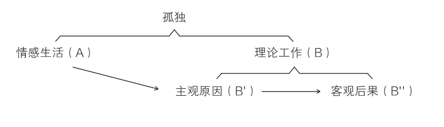在《来日方长》里,孤独的主题实际上具有双重的悖论性。它把一个共同的结构不仅赋予了阿尔都塞的情感生活(A)和理论工作(B)这两个不同的方面,而且赋予了理论工作的私人、主观的原因(B′)和公共、客观的后果(B″)这两个不同的领域。我们在“最伟大的哲学家都是天生没有父亲的”那段话里所指出的“巨大的跨越”,并非发生在A和B之间,而是发生在A→B′和B″之间,即主体和完全在其主观性之外所发生的事情之间: