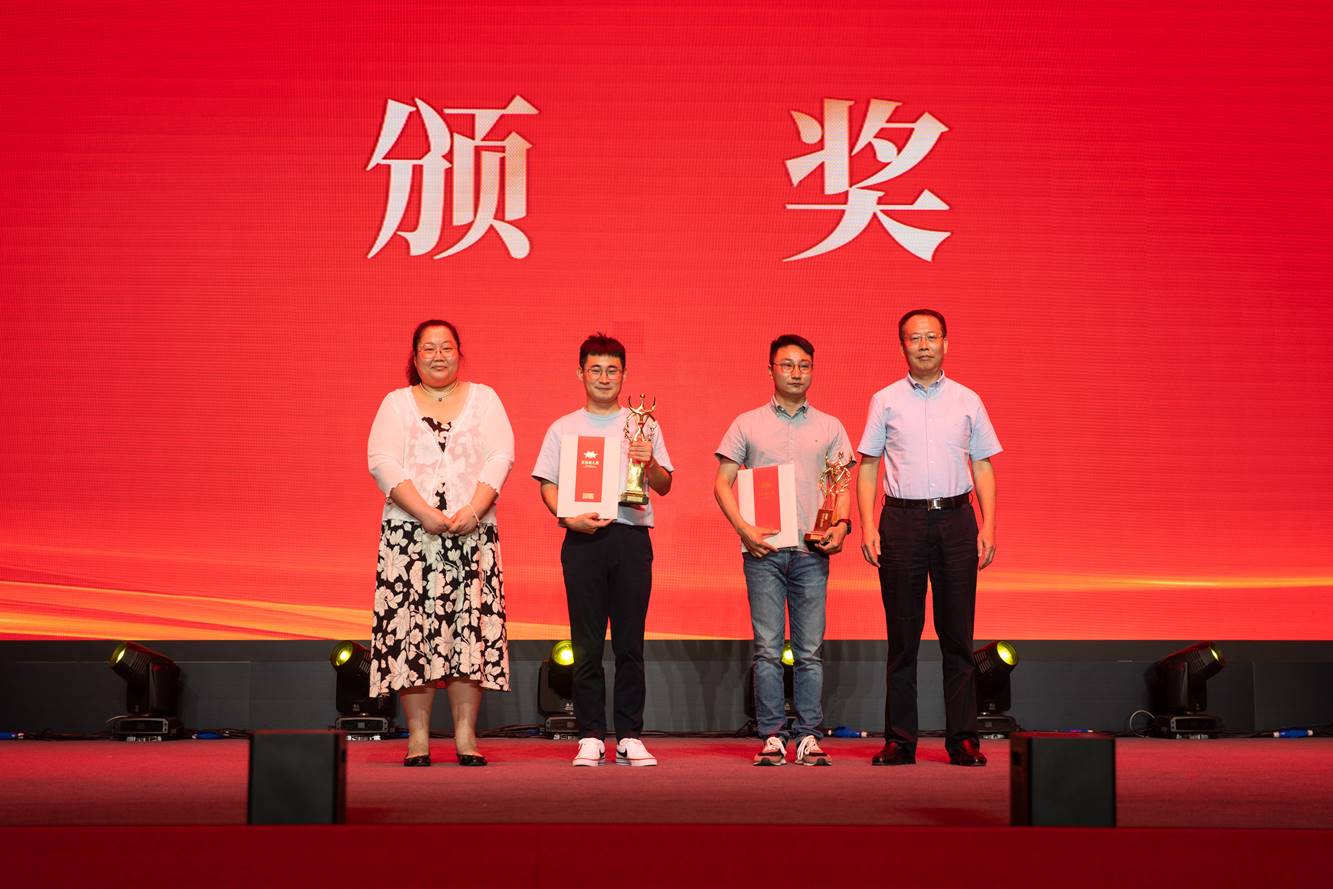 安亚斌、徐小洲为蝴蝶蓝、会说话的肘子(代领)颁奖