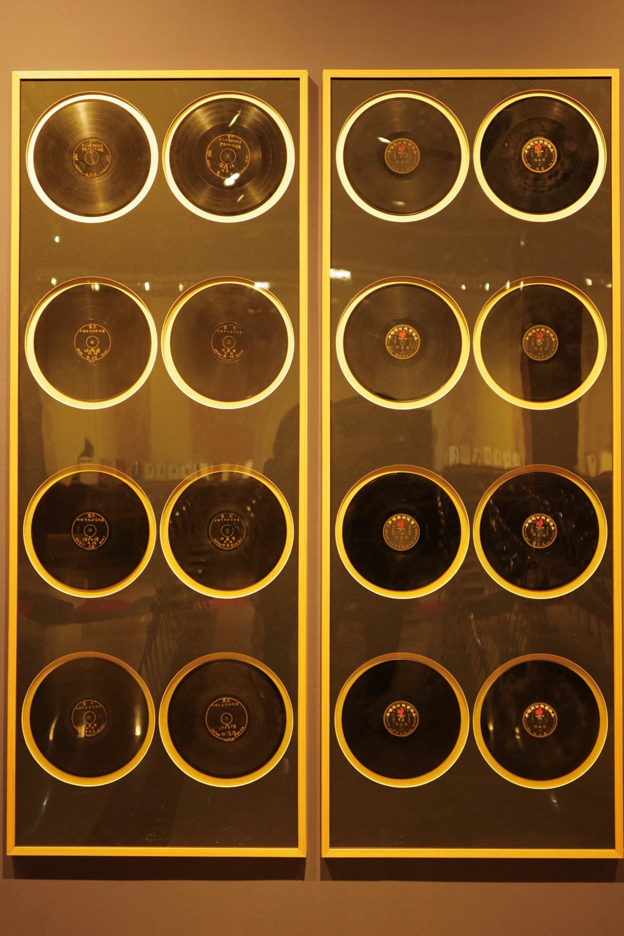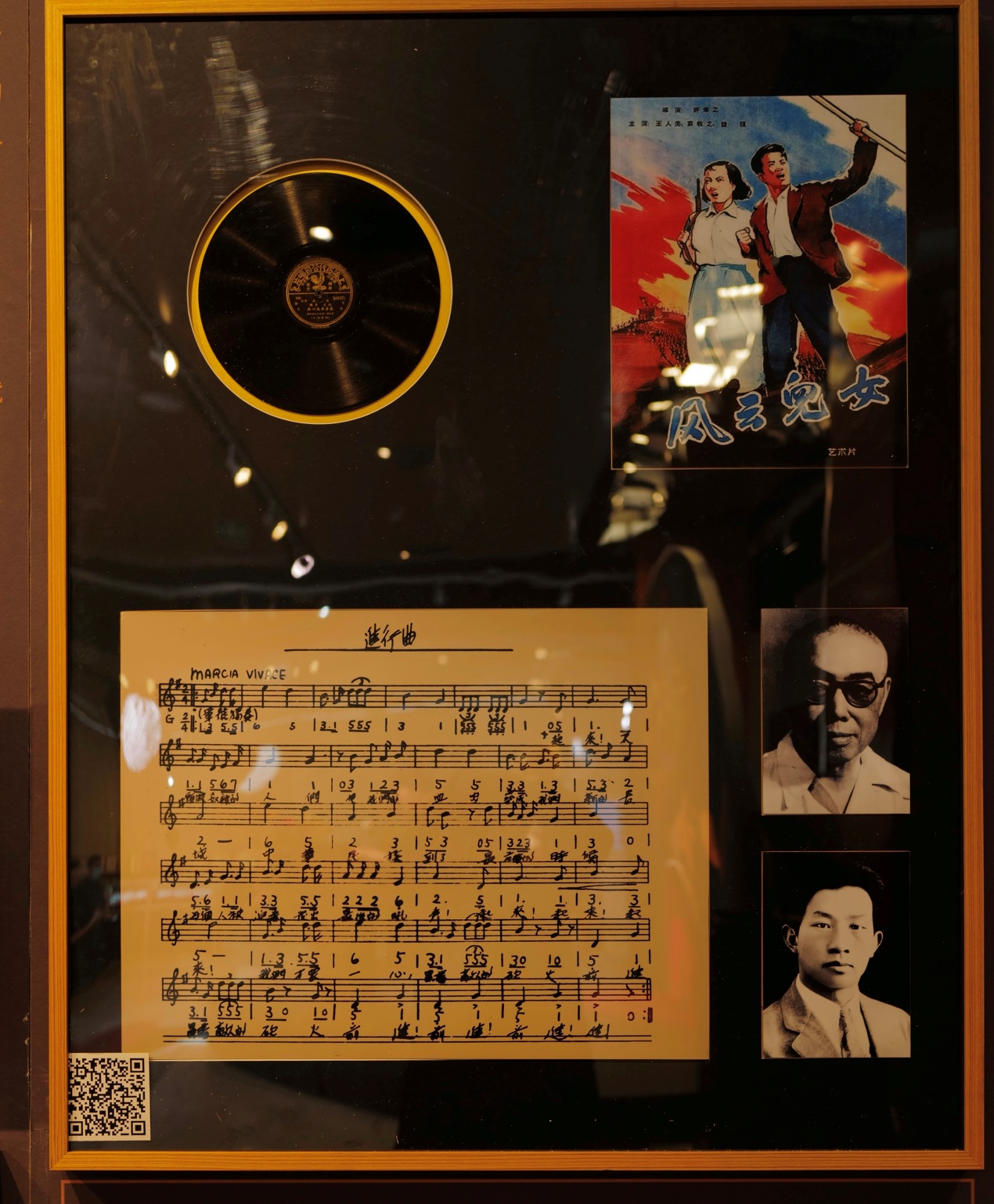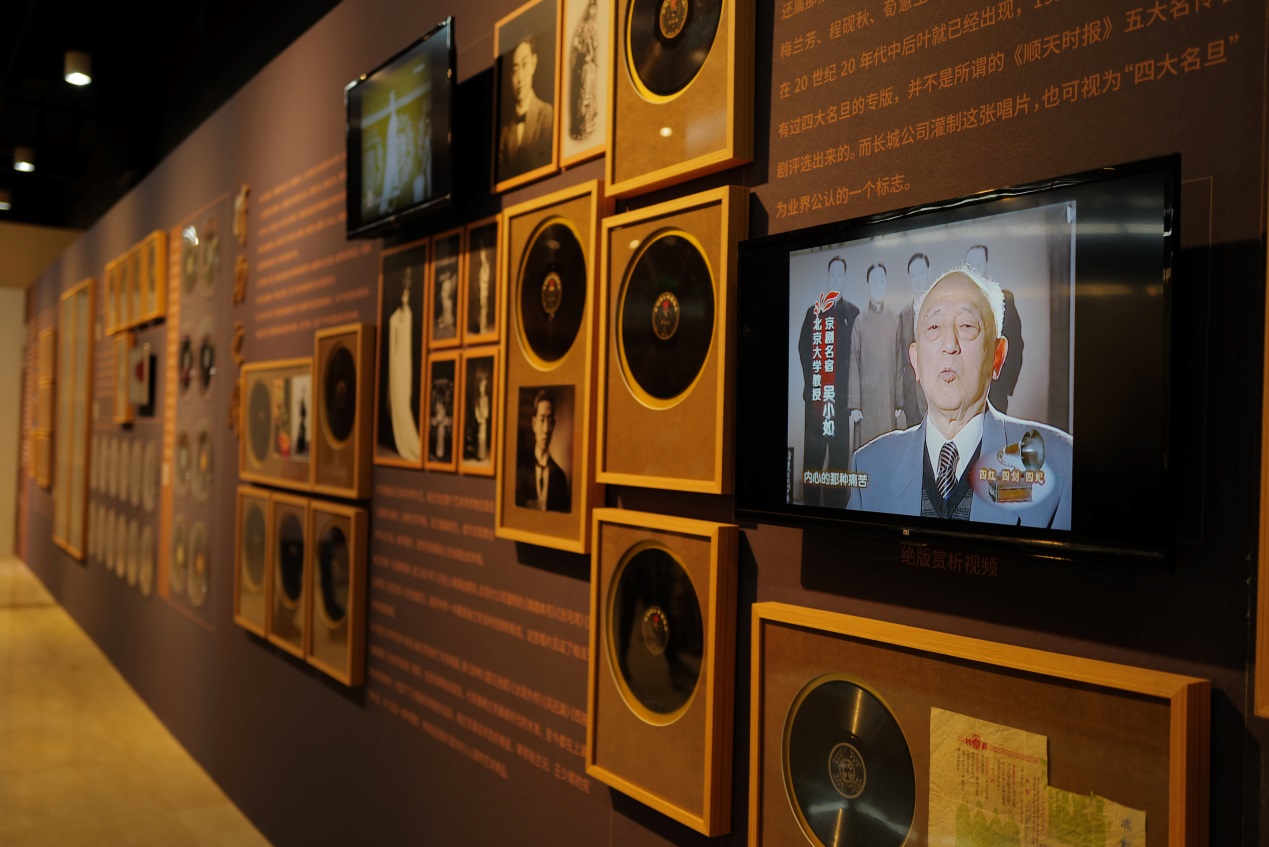 展品中第一张唱片,因其片心图案为带翅膀的小天使,被称为“小天使唱片”,它于1903年灌制,是目前已知的最早一期中国本土黑胶唱片。1904年在中国本土录制的龙纹唱片,是中国有声历史的重要实物,代表着最早期中国唱片的制式与样貌。京剧谭派创始人谭鑫培先生的“七张半”唱片,能集齐一套已十分难得,此次则展出“手刻”与“红公鸡”两套完整版本,堪称展览最大亮点。而由梅兰芳、尚小云、程砚秋、荀慧生于1932年共同录制的《四五花洞》唱片,是四人唯一合作作品,且正是此次录制使得“四大名旦”称号得以产生。展览另一大亮点展品是录制于1935年5月的《义勇军进行曲》首版唱片,歌曲蕴含了中国人民的伟大爱国主义精神。