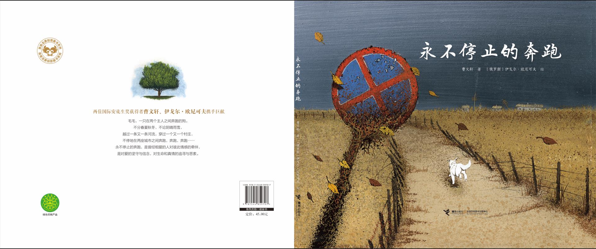 《永不停止的奔跑》由曹文轩与2018年获得国际安徒生奖的俄罗斯画家伊戈尔•欧尼可夫合作完成,文字与画面的完美结合赋予了故事无限深远的意义。曹文轩在感言中也向欧尼可夫表达了敬意,“我要特别感谢俄罗斯著名的画家伊戈尔•欧尼可夫,是他对我作品的理解以及理解之后的二度创作,才有了《永不停止的奔跑》。他用他甚至可以独立欣赏的画面,颠覆了一加一等于二的数学计算,而获得了一个远远大于二的数字。文学与艺术的结合真是一种令人感叹,技术的集合,这是一种令人感叹,令人神往的结合!”同时他提到,即将问世的作品中,就有一部自己和伊戈尔•欧尼可夫再度合作的作品《灵魂像鸟一样飞往南方》。
