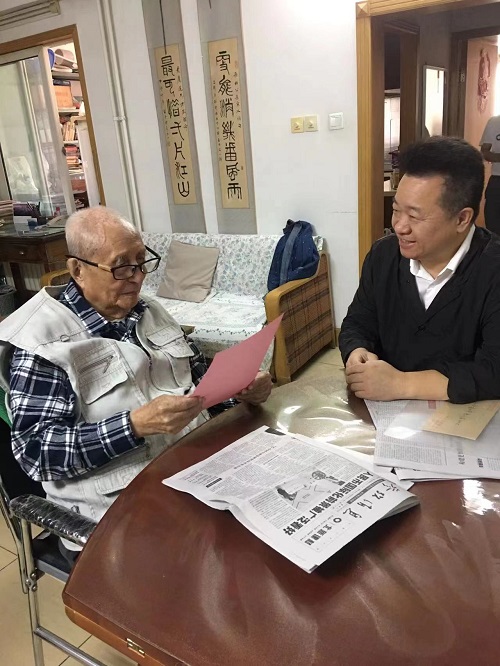 9月29日,重阳将至,中国作家协会书记处书记邱华栋代表中国作家协会走访慰问在京老作家袁鹰。邱华栋对袁老在文学事业上取得的丰硕成果表达最诚挚的敬意,并仔细询问了袁老的身体状况和生活情况,代表中国作协对袁老表示亲切慰问,衷心祝愿袁老吉祥安康、福寿绵延。
