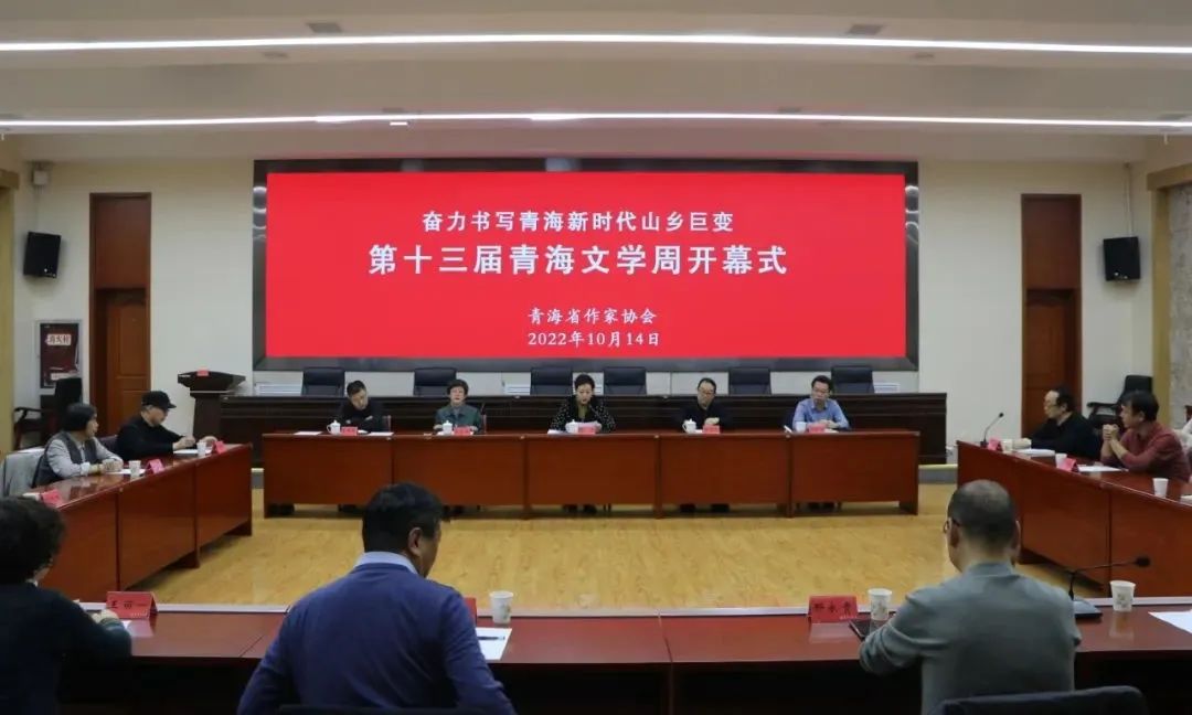 10月14日,由青海省作协主办的以“奋力书写青海新时代山乡巨变”为主题的第十三届青海文学周以线上和线下相结合的形式在西宁开幕,主会场设在青海美术馆。
