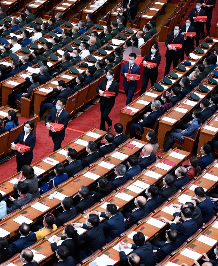 10月22日,中国共产党第二十次全国代表大会闭幕会在北京人民大会堂举行。这是工作人员在发选票。 新华社记者 翟健岚 摄