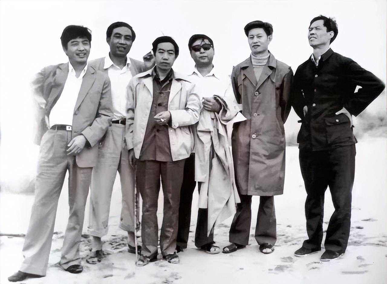 1985年秋摄于陕北毛乌素沙漠 (左起依次)子页、白描、贾平凹 路遥、京夫、陈忠实