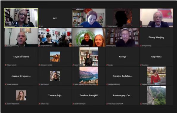中国作家韩少功,贝尔格莱德大学语言学院副教授、文学翻译家米拉,塞尔维亚GEOPOETIKA出版社社长巴亚茨,贝尔格莱德大学语言学院副教授佐兰,贝尔格莱德大学语言学院助理教授安娜,以及热爱中国文学作品的读者和当地学生等近百人以线上线下的方式参加了活动。
