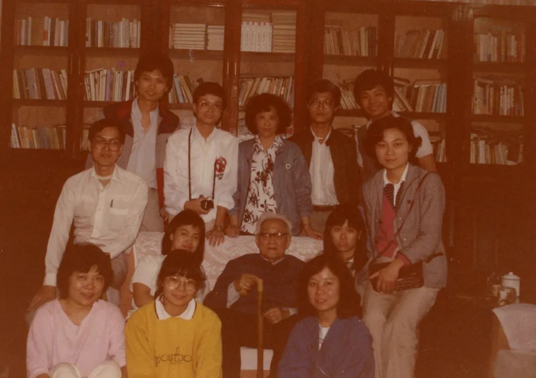 见面后,巴老留给他们什么印象呢?是不是像很多粉丝对于偶像那样,不见倒好,见了之后反而失望了呢?伍美琴背着给巴老的小礼物和《随想录》,和同学一起来到了武康路113号。出现在她面前的巴老,不是青春焕发的战士,而是一位有着“花白的头发和颤抖的身体”的老人,那一天巴老身体也不舒服,说话喘气也很重。但是,他还是坚持着跟每一个人握了手。《一点烛光》的歌声结束后,伍美琴写道:“大伙都希望拍一张照片留念。我们把巴金先生扶到了沙发的另一端,他慢慢坐在沙发上,我就坐在他的旁边。蓦然,我发现他的眼角正渗出泪水,我的心一下子发酸了,泪也涌到眼中。”歌声与泪水,道出了彼此心意交融在一起的情感。我找到了巴老留存的这张照片,伍美琴蹲在巴老的右前方,她穿着黄色上衣,留着短发,戴着一副大大的眼镜,是一个很文静的姑娘。