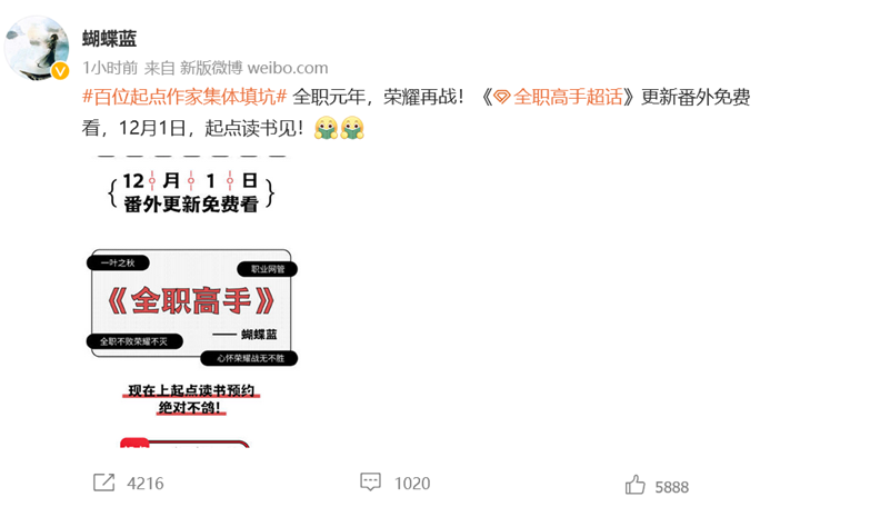 11月25日上午,爱潜水的乌贼、蝴蝶蓝、南派三叔、唐家三少、萧鼎等网文大神陆续在社交媒体回应,宣布将为自己的完结作品加更番外,满足广大读者的愿望。