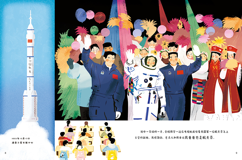 中国作家网:看完您创作的“爸爸系列”绘本,我十分感动,尤其是《爸爸的秘密》以一个女儿的视角,从好奇到期待、再到淡淡的失落,讲述了父亲邓清明25年来对航天事业的执着、坚守与努力。是什么契机促使您关注到航天题材,并且选取这个感人的角度,能否回忆一下当时的创作历程?这对父女之间的故事,哪一个瞬间让您最为感动和难忘?