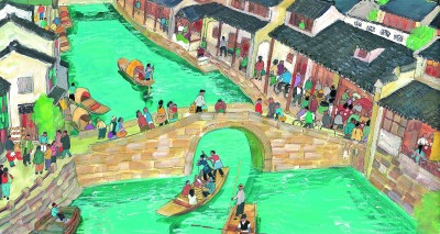 中国的原创图画书,也有一批创作者“澄怀味象”,用中国人独特的情感体悟和审美意趣,去表现身处其中的家园,去描绘心中“生气灵动”的“山水”。“山水”在古代,是自然中的山水,而在现代,随着生活环境的变化,也涵盖了“望得见山、看得见水、记得住乡愁”的城镇。