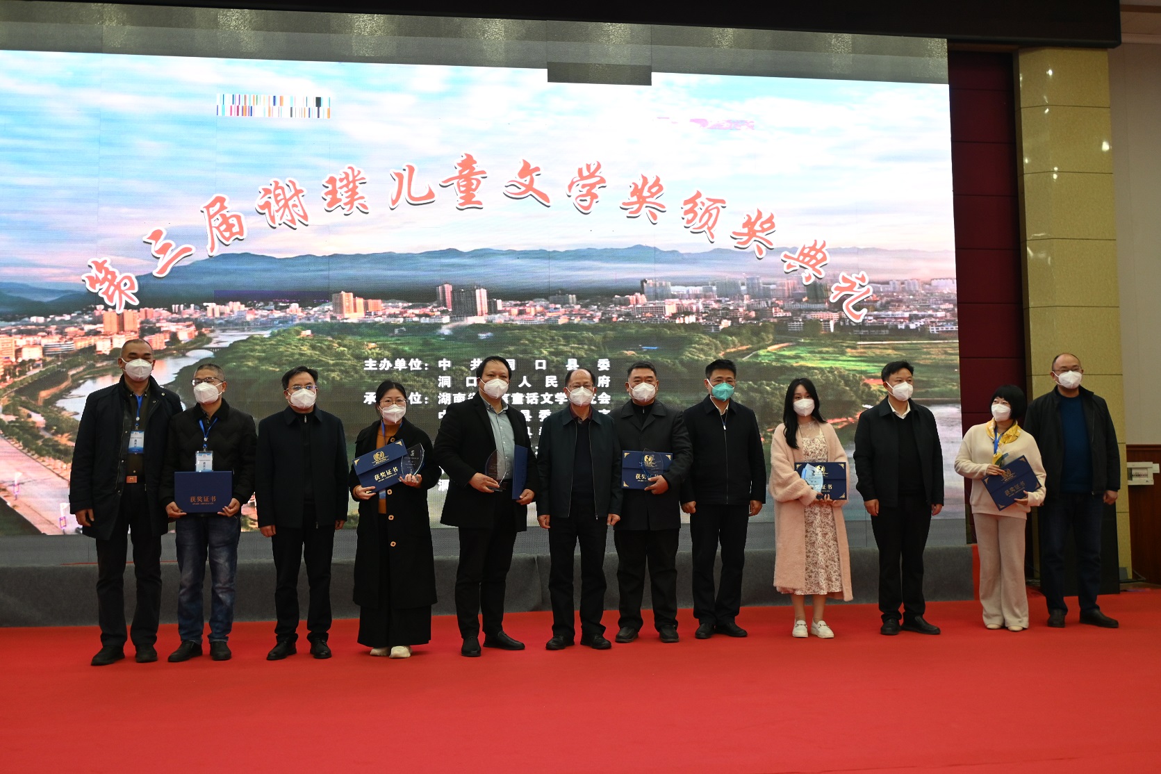 12月19日,第三届谢璞儿童文学奖颁奖典礼在谢璞先生故里——蜜橘之乡湖南省洞口县隆重举行,张战、诺亚(彭湖)、廖军、陈静、小麦(刘丽艳)、肖智群等获奖代表到会领奖。这是该奖2021年落户谢璞先生家乡洞口县后的第二次颁奖典礼。