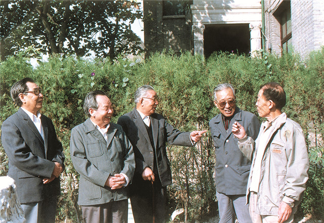 当年一起参加抗日队伍的作家五战友。左起:胡正、西戎、李束为、马烽、孙谦。 曹平安 摄