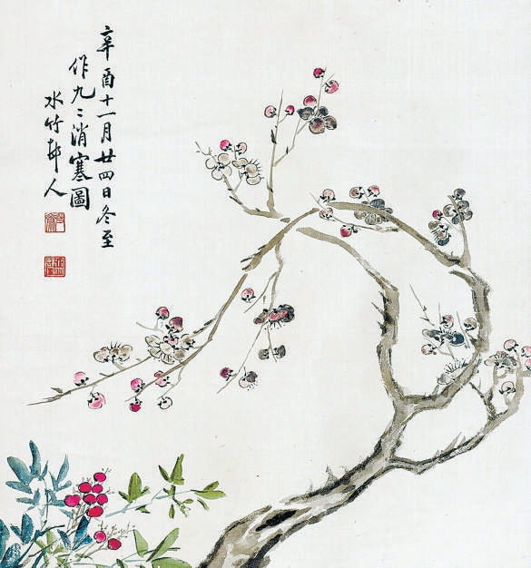 梅花型消寒图被称为“雅图”。图上先画素梅一枝,梅花或正或侧,或盛开,或尚为花苞,共八十一瓣。每天染红一瓣,到第九九八十一天时,花瓣全被涂染成了红色,就是一枝红梅迎春风。古代闺阁中的女子早起化妆时便用胭脂晕染一瓣,别有趣味。