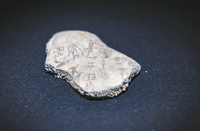 “殷墟甲骨”专题展上的“甲骨2174”,左上为甲骨文“兔”。