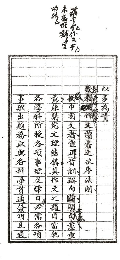 癸卯学制《初级师范学堂章程》第三次稿本中关于“中国文”一科教法的规定和批改。