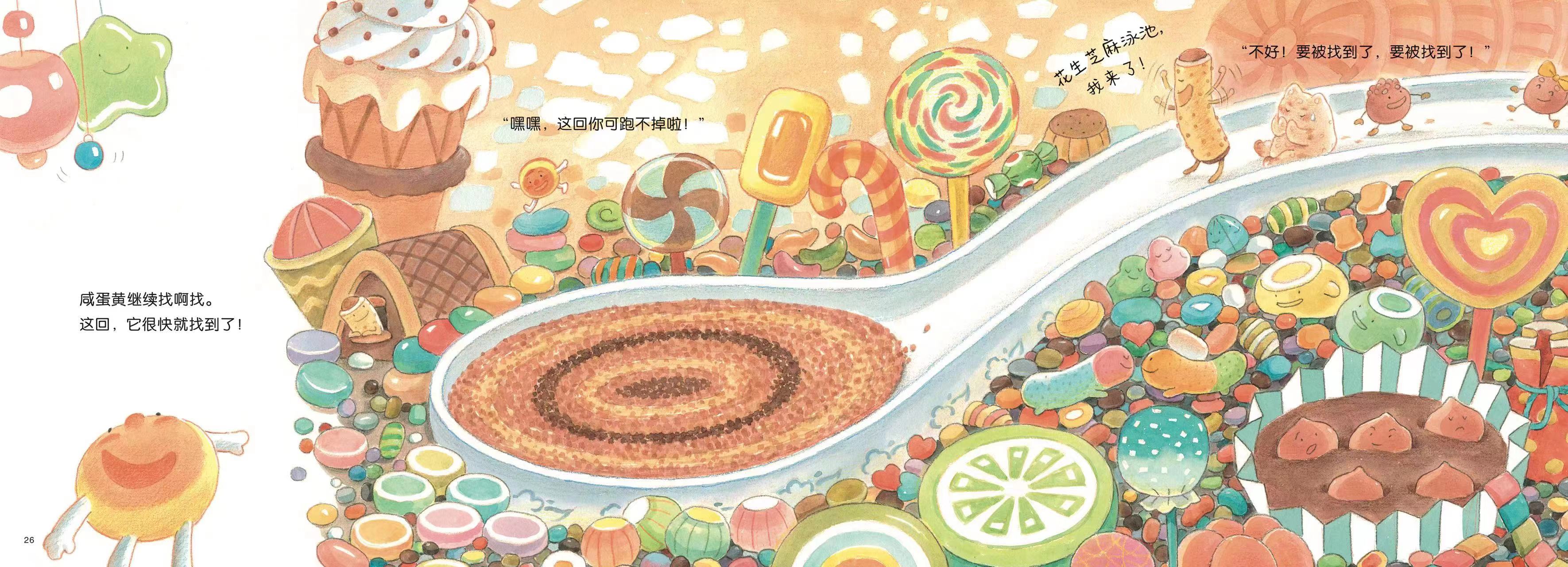 中国作家网:您的处女作绘本《不要和糯米团捉迷藏》里的食物都是中国传统小吃“驴打滚、糖不甩、粽子、汤圆”等,能说说创意的由来吗?您为什么坚持要做关于中国传统美食的绘本?